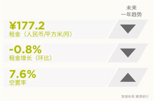 季度甲級(jí)寫(xiě)字樓租金和空置率走勢(shì)