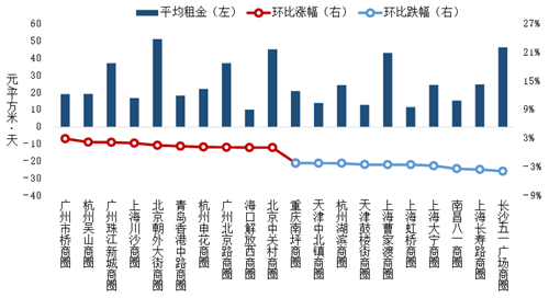 圖:2020年下半年租金環(huán)比漲跌幅較大的商圈