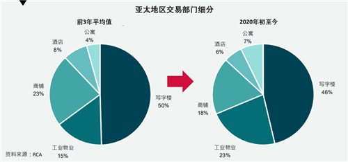 報告顯示,截至2020年10月,整體商業(yè)物業(yè)交易額同比2019年下降了33%,低至1060億美元。盡管中國香港特別行政區(qū)、新加坡等地區(qū)的傳統(tǒng)熱門市場的交易額出現(xiàn)了普遍下跌(下降幅度分別為56%和69%),但由于有一些亮點涌現(xiàn),防止了整片地區(qū)的交易額出現(xiàn)系統(tǒng)性的下降。