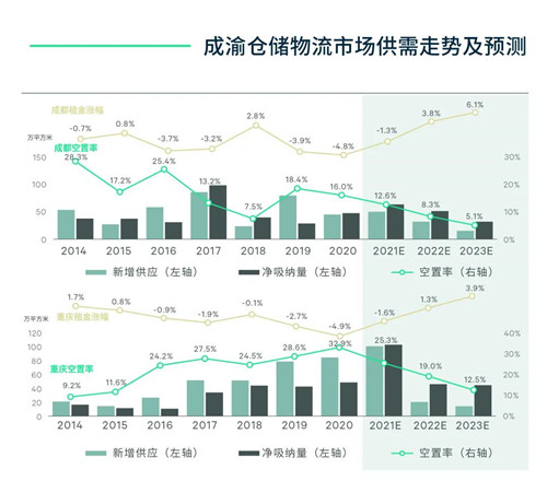 過去5年,供需兩旺、去化優(yōu)先是中國西部倉儲物流市場的主流趨勢。然而2021年將是轉(zhuǎn)折之年,隨著供應(yīng)潮迎來尾聲,供需天平即將翻轉(zhuǎn),租金上行通道開啟。同時,“十四五”期間,中國作出以城市化和內(nèi)循環(huán)為核心的經(jīng)濟(jì)發(fā)展部署,在推進(jìn)西部大開發(fā)形成新格局的背景之下,積極建設(shè)成渝雙城經(jīng)濟(jì)圈,成都、重慶繼而迎來新定位、新啟程。有鑒于此,成渝倉儲物流市場也將隨之迎來波瀾壯闊的新格局和新機(jī)遇。