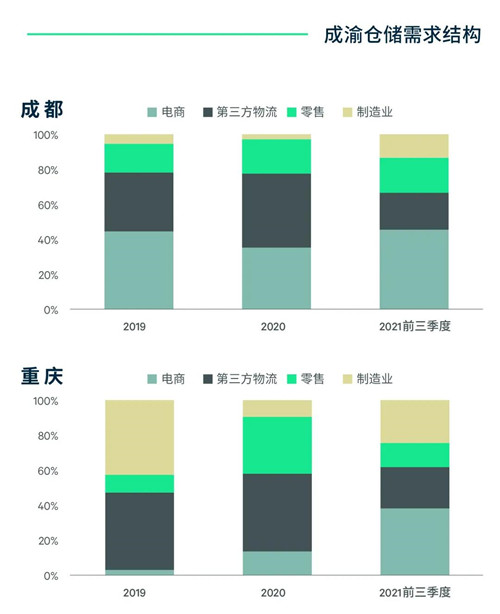 消費(fèi)和制造為成渝倉儲需求的主導(dǎo)