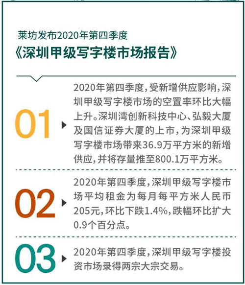 2020年第四季度深圳甲級(jí)寫字樓投資市場(chǎng)錄得兩宗大宗交易。