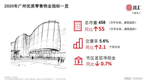 優(yōu)質(zhì)零售物業(yè)市場方面,廣州消費市場持續(xù)穩(wěn)步復蘇的態(tài)勢,全市整體租賃需求穩(wěn)步回升,全年凈吸納量超過46萬平方米,位于一線城市之首。奢侈品消費回流帶動廣州奢侈品銷售業(yè)績強勁反彈,吸引不少國際奢侈品服飾及一線美妝品牌進駐廣州,但服飾零售受疫情影響顯著,線下擴張仍較為謹慎。