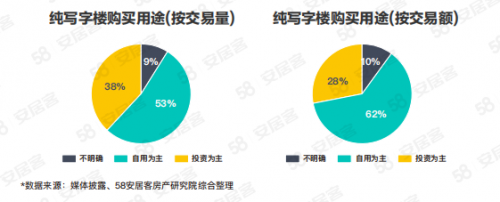 使用用途方面,盡管只有少部分買(mǎi)家披露,但可從買(mǎi)家性質(zhì)做簡(jiǎn)單推斷,將投資、物管、房地產(chǎn)公司買(mǎi)家歸為以投資為主,剩余買(mǎi)家歸為以自用為主,以交易量來(lái)計(jì)算,純寫(xiě)字樓中53%為自用為主、38%為投資為主。按交易額計(jì),純寫(xiě)字樓成交額中62%由自用為主買(mǎi)家貢獻(xiàn),28%來(lái)自投資為主買(mǎi)家。
