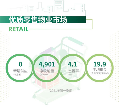2021年第一季度南京零售市場未錄得新增供應(yīng),空置率下降了0.2個百分點至4.1%。