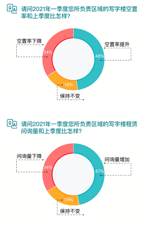 一直以來(lái),經(jīng)紀(jì)人對(duì)于市場(chǎng)變化極其敏銳,58安居客房產(chǎn)研究院調(diào)研數(shù)據(jù)顯示,2021年一季度商業(yè)地產(chǎn)經(jīng)紀(jì)人信心指數(shù)為95.96,環(huán)比上漲12.5%。在接受調(diào)研的經(jīng)紀(jì)人中,有48%的經(jīng)紀(jì)人認(rèn)為自己負(fù)責(zé)區(qū)域的寫字樓空置率提升,不過(guò)有47%的經(jīng)紀(jì)人表示一季度的寫字樓問(wèn)詢量增加。