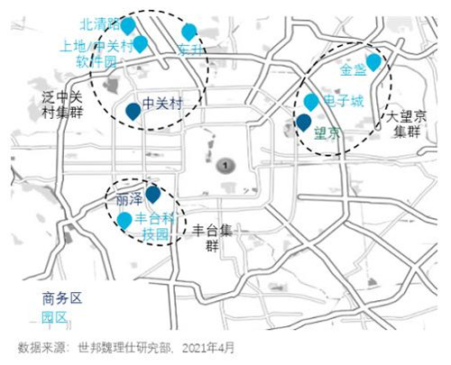 在"十四五"規(guī)劃打造"產(chǎn)業(yè)+園區(qū)"協(xié)同開放的創(chuàng)新政策引導(dǎo)和支持下,北京的外圍區(qū)域?qū)⒅攸c(diǎn)發(fā)展一批產(chǎn)業(yè)園區(qū),與鄰近的商務(wù)區(qū)協(xié)同形成集群,為企業(yè)和投資者選址提供外延視角。其中泛中關(guān)村集群將率先形成成熟的產(chǎn)業(yè)生態(tài)圈。未來大望京、豐臺等集群也將得到外圍園區(qū)的優(yōu)質(zhì)辦公空間補(bǔ)充,各子市場共享集群內(nèi)的教育、科研、商業(yè)、居住等配套資源以及一致的產(chǎn)業(yè)政策扶持。