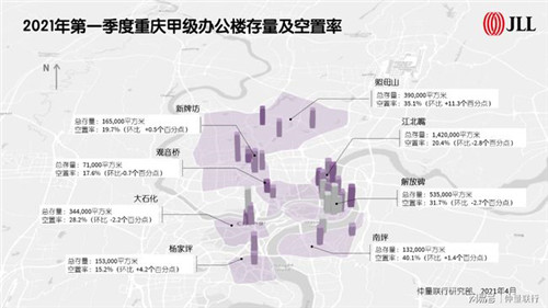 一季度,城市北部照母山板塊四年間首次迎來(lái)甲級(jí)辦公樓供應(yīng),光環(huán)中心B座與星匯財(cái)富國(guó)際商務(wù)中心的集中交付為市場(chǎng)帶來(lái)約7.0萬(wàn)平方米優(yōu)質(zhì)辦公空間,區(qū)域總存量增至38.9萬(wàn)平方米。由此,重慶外資企業(yè)最集中的解放碑CBD、中國(guó)內(nèi)陸地區(qū)金融產(chǎn)業(yè)集中度最高的江北嘴CBD、重慶科技互聯(lián)網(wǎng)產(chǎn)業(yè)聚集的照母山板塊,共同構(gòu)筑重慶三大核心商務(wù)區(qū)。