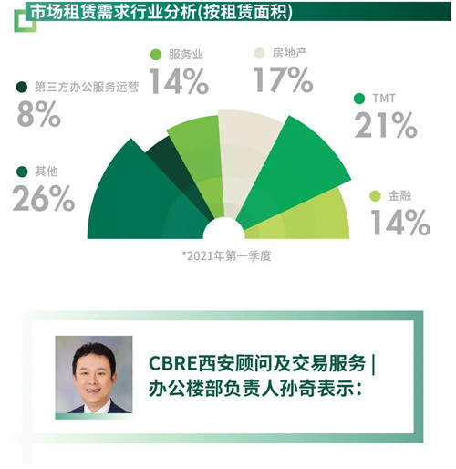 “西安第一季度新開工項(xiàng)目中近40%為創(chuàng)新驅(qū)動(dòng)和先進(jìn)制造業(yè)項(xiàng)目,其中不乏奕斯偉硅產(chǎn)業(yè)基地及華為物聯(lián)網(wǎng)中心等龍頭企業(yè)項(xiàng)目。隨著新能源、通信、智能制造等重要科技領(lǐng)域的國(guó)內(nèi)外企業(yè)機(jī)構(gòu)的持續(xù)進(jìn)駐,頭部企業(yè)聚集效應(yīng)帶動(dòng)西安科技創(chuàng)新氛圍愈發(fā)濃厚,未來(lái)有望衍生更多辦公需求。”
