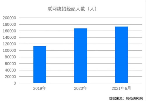 此外,房產(chǎn)經(jīng)紀(jì)行業(yè)對(duì)于大學(xué)生人才的需求還在不斷增加。2017-2020年,房地產(chǎn)經(jīng)紀(jì)行業(yè)本科及以上人才需求占比由26.7%上漲到40.2%,房地產(chǎn)經(jīng)紀(jì)行業(yè)整體人才質(zhì)量提升需求迫切。貝殼數(shù)據(jù)顯示,2021年1月1日至2021年5月底,貝殼合作新經(jīng)紀(jì)品牌共收到了超200萬(wàn)份經(jīng)紀(jì)人應(yīng)聘簡(jiǎn)歷。