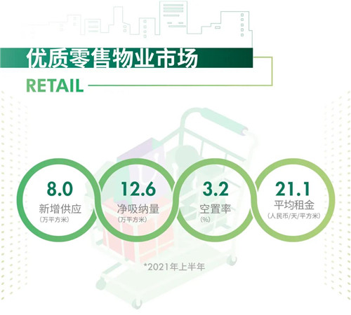 2021年上半年,杭州零售物業(yè)市場共有一處新增供應入市,為位于城北區(qū)域的融創(chuàng)文旅Ins.Park。其作為融創(chuàng)文旅集團首進杭城的商業(yè)項目, 融創(chuàng)Ins. Park定位“杭城潮場首店”,在約8萬平方米的Block+街區(qū)空間內,打破傳統(tǒng)零售日漸模式化的桎梏,創(chuàng)新地實現“商業(yè)+潮流文化”的有機融合。目前引入的90余家優(yōu)質品牌中不乏杭州甚至浙江首店。另得益于疫情后穩(wěn)步復蘇的旺盛需求以及各類購物節(jié)推廣活動等,上半年杭州零售物業(yè)市場租金呈穩(wěn)步增長,購物中心首層平均租金報每天每平方米21.1元,較2020年末上浮3.3%,季度環(huán)比上漲2.4%。