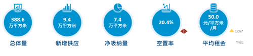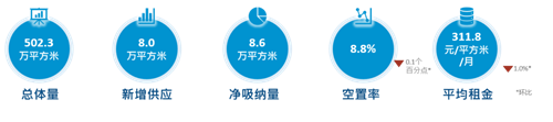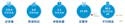 二季度季度未迎來甲級寫字樓入市,全市甲級寫字樓總存量維持在176.9萬平方米,與第一季度持平。