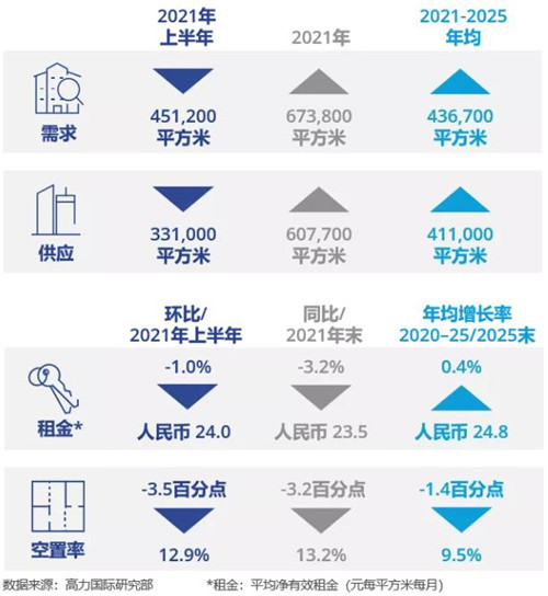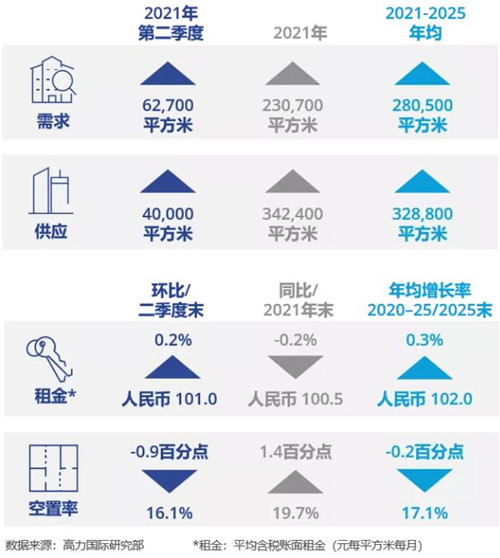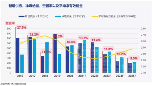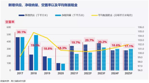 隨后的2022年,預(yù)計全年仍將有超60萬平方米的新增供應(yīng)面積,此后供應(yīng)回落,平均租金逐步回升。