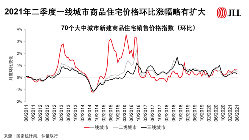 國家統(tǒng)計(jì)局?jǐn)?shù)據(jù)顯示,1-6月份全國商品住宅銷售面積同比增長(zhǎng)29.4%,商品住宅銷售額同比增長(zhǎng)41.9%,均創(chuàng)歷史同期新高。仲量聯(lián)行跟蹤的20個(gè)主要一、二線城市一手住宅成交數(shù)據(jù)顯示,二季度20城市一手住宅成交面積合計(jì)約7200萬平方米,環(huán)比增長(zhǎng)34%,較去年同期增長(zhǎng)了30%。其中,一線城市成交量共計(jì)931萬平方米,環(huán)比回調(diào)13%,這主要是因?yàn),在上半年政策頻繁加碼后,深圳、廣州和上海的一手住宅成交量均有回撤,尤其是深圳二季度一手成交量環(huán)比大跌43%;而二線城市的一手住宅成交二季度則較一季度大漲46%,其中,鄭州、杭州和重慶等城市成交面積分別環(huán)比大漲246%、196%和89%。