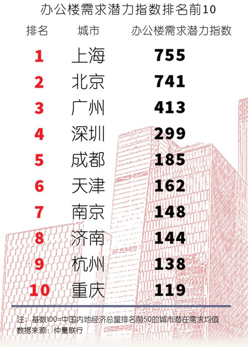 辦公租賃成本指數(shù):京滬領(lǐng)跑全國(guó)