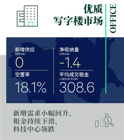 全市平均成交租金同樣本比環(huán)比下滑0.6%至每月每平方米308.6元;多個子市場租金錄得不同程度跌幅,其中中關(guān)村、望京、奧體等科技企業(yè)集中的區(qū)域和王府井子市場的租金跌幅均超過1%。