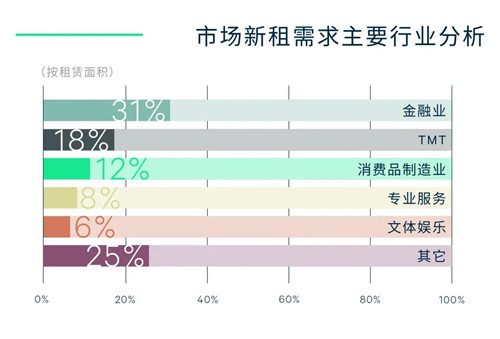 隨著商務(wù)活力和企業(yè)復工迅速恢復,整體市場的帶看量和交易量環(huán)比均有所回升,其中新租交易總量環(huán)比上漲28%。子市場中,CBD、麗澤和東二環(huán)相對活躍,新租交易總量占全市的54%,均錄有大面積成交;石景山商務(wù)區(qū)緊隨其后,主要得益于地緣性租戶的升級搬遷和擴租。分行業(yè),證券、基金、資管類租戶持續(xù)擴租,推動金融新租需求總量占比環(huán)比上升至31%,成為最活躍的板塊;其次為TMT,但其新租總面積環(huán)比下降25%,同時擴租依然謹慎;此外,受食品、服飾等日常用品的升級搬遷及擴租需求推動,消費品制造業(yè)新租需求占比上升至第三位;其它行業(yè)需求保持平穩(wěn)。