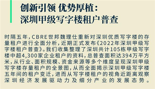 CBRE深圳顧問及交易服務部 | 辦公樓負責人吳洋表示:“近兩年,科技行業(yè)的政策監(jiān)管將改變該行業(yè)的發(fā)展態(tài)勢,從而對未來寫字樓租戶結(jié)構(gòu)產(chǎn)生一定的影響,但來自半導體、軟硬件、新能源汽車和數(shù)據(jù)服務的科技新賽道的需求增長將令科技企業(yè)需求依然在優(yōu)質(zhì)寫字樓市場中占據(jù)重要的一席。值得注意的是,今年6月,深圳市政府發(fā)布了‘20+8’的產(chǎn)業(yè)體系政策,著力發(fā)展壯大戰(zhàn)略性新興產(chǎn)業(yè)集群、培育發(fā)展未來產(chǎn)業(yè),‘20+8’產(chǎn)業(yè)體系幾乎覆蓋了世界上最有潛力的新興產(chǎn)業(yè),將為深圳優(yōu)質(zhì)寫字樓市場帶來更為豐富多元的科技產(chǎn)業(yè)需求。與此同時,深圳作為深港合作的重要節(jié)點城市及先行示范區(qū),未來在金融創(chuàng)新方面將不斷進行突破,疊加已有的依托深交所已經(jīng)形成的金融業(yè)生態(tài)基礎,未來金融產(chǎn)業(yè)將呈現(xiàn)長足發(fā)展,帶動金融產(chǎn)業(yè)需求不斷提升。另一方面,憑借全國領先的商事登記主體數(shù)量優(yōu)勢,以及良好的發(fā)展和創(chuàng)新平臺,也將令專業(yè)服務業(yè)板塊需求不斷增長,特別是科技生態(tài)優(yōu)勢帶來的知識產(chǎn)權(quán)類法律類企業(yè)需求的增長將保持良好態(tài)勢。金融、科技和專業(yè)服務業(yè)三大主力需求板塊的發(fā)展向好,將共同推動優(yōu)質(zhì)寫字樓市場的穩(wěn)定發(fā)展!