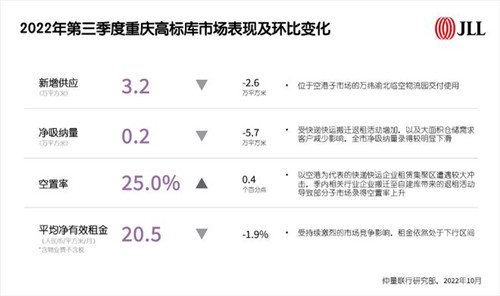 2022年第三季度重慶高標(biāo)庫市場表現(xiàn)及環(huán)比變化