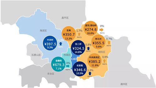 甲級(jí)寫(xiě)字樓市場(chǎng)各商圈平均租金