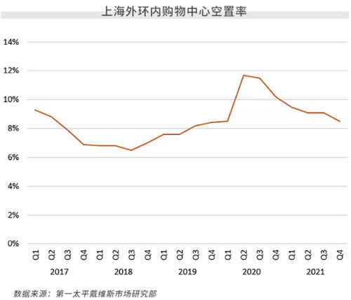 全年平均租金累計上漲1.3%至26.5元,空置率同比下降1.7個百分點至8.5%,自疫情后連續(xù)七個季度保持下降趨勢,上海零售市場入駐率基本恢復至疫情前水平。休閑娛樂、汽車、運動及戶外在2021年品牌租賃需求提升顯著,為上海購物中心面積中整體占比同比增長前三位。
