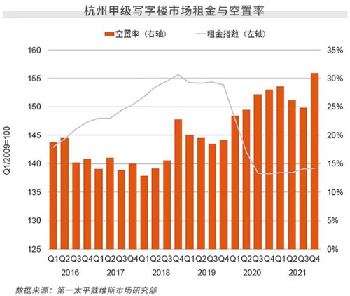據(jù)第一太平戴維斯近日發(fā)布的杭州商業(yè)地產市場報告,2021年四季度杭州甲級寫字樓平均租金環(huán)比保持平穩(wěn),同比上升0.7%;零售市場非核心商圈頻開優(yōu)質項目,商業(yè)多中心發(fā)展趨勢明顯。