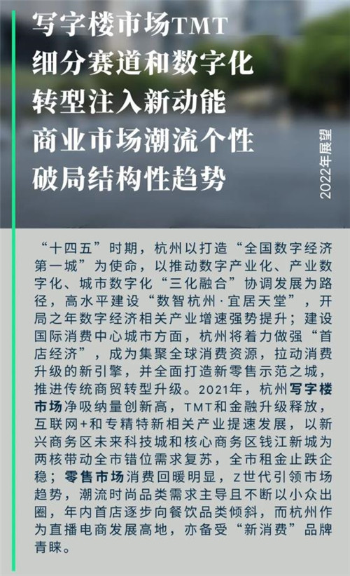 CBRE杭州分公司董事總經(jīng)理兼戰(zhàn)略顧問部負責(zé)人何達表示,“首店經(jīng)濟”是杭州培育建設(shè)國際消費中心城市的重要路徑,2021年已然在新零售、新業(yè)態(tài)、新模式上做出杭州特色挖掘,各類潮流個性化、精品化、概念化、小眾化首店蓬勃發(fā)展,從供給端推動消費升級。展望2022年,約有18萬平方米新增供應(yīng),皆位于次級及新興商圈,其中包括龍湖輕資產(chǎn)運營項目吾角商業(yè)中心。隨著2022年計劃投入的多條地鐵線運營,將助推亞運會期間杭州文旅消費升級,穩(wěn)健需求預(yù)期延續(xù)租金增長態(tài)勢。同時,數(shù)智杭州持續(xù)賦能消費市場國際化、品質(zhì)化發(fā)展,到 2024年之后,順應(yīng)多家高階商業(yè)爆發(fā)式增長,杭州將從質(zhì)上重塑城市商業(yè)新格局。