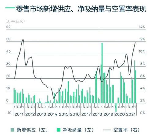 受“7·20特大自然災(zāi)害”及“新冠疫情”的影響,2021年鄭州零售物業(yè)市場(chǎng)起伏較大,空置率方面推升至11.8%,為近年來(lái)最高。供應(yīng)端主要集中在第四季度,全年市場(chǎng)共錄得11個(gè)購(gòu)物中心入市,以城市更新存量改造為主。其中,位于二七商圈的CITY大融城通過(guò)多維度整體改造,以引進(jìn)多個(gè)城市首進(jìn)品牌為核心,不僅成為了近年來(lái)具有代表性的城市更新存量改造項(xiàng)目,也為二七商圈注入了新活力,助推片區(qū)商業(yè)氛圍提升。此外,位于城市近郊的杉杉奧特萊斯購(gòu)物廣場(chǎng)2期、新城吾悅廣場(chǎng)·滎陽(yáng)店歷經(jīng)籌備實(shí)現(xiàn)了滿鋪開業(yè),也體現(xiàn)出由專業(yè)成熟的開發(fā)運(yùn)營(yíng)商操盤下,對(duì)市場(chǎng)形成的優(yōu)質(zhì)供應(yīng)和區(qū)域消費(fèi)提檔升級(jí)。