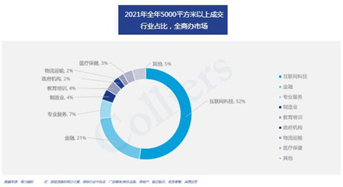 全年5000 平以上大面積成交仍以互聯(lián)網(wǎng)科技類企業(yè)為主