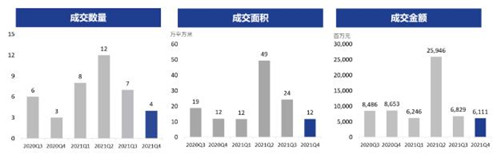 ·2021年第四季度北京共錄得4宗交易,成交面積約為12萬(wàn)平方米,成交金額近人民幣61億元;