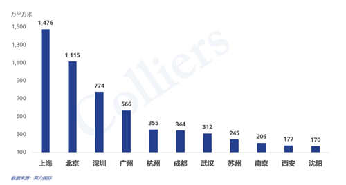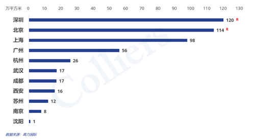 需求量:深圳市場的需求量領(lǐng)跑全國,達到創(chuàng)歷史記錄的近120萬平米的水平,北京緊隨其后也達到了創(chuàng)記錄的114萬平方米,上海也創(chuàng)造了近百萬平米的新增需求,光這三個一線市場就占到了全部需求量的7成。