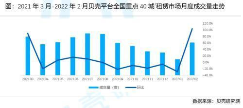 貝殼研究院數(shù)據(jù)顯示,今年2月全國(guó)重點(diǎn)40城租賃成交量環(huán)比增加103.6%,各城市租賃市場(chǎng)均環(huán)比增加超30%,超6成城市市場(chǎng)活躍度翻倍提升,西安解封后2月市場(chǎng)熱度超過(guò)去年熱度峰值的7成。
