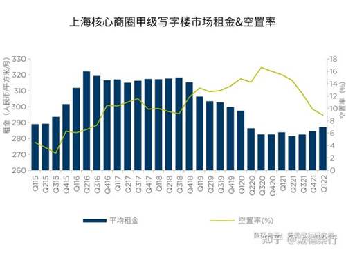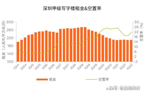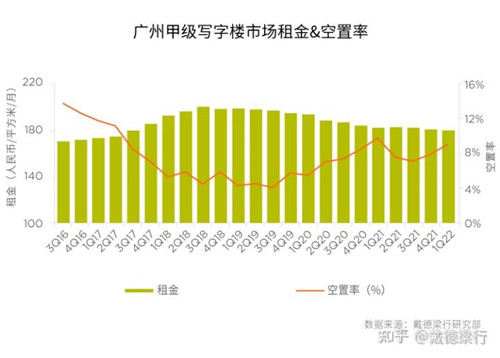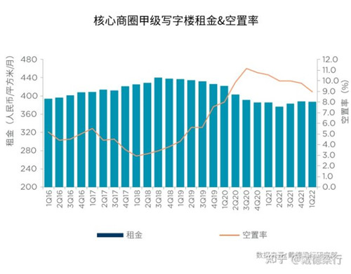 季度甲級(jí)寫字樓租金和空置率走勢(shì)