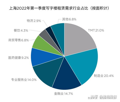 TMT仍是本季度的成交主力,成交面積占全市總成交面積的24.5%,互聯(lián)網(wǎng)企業(yè)持續(xù)引領(lǐng)寫字樓市場(chǎng)去化。制造業(yè)的發(fā)展亦帶來強(qiáng)勁需求,季內(nèi)成交面積占全市比例環(huán)比擴(kuò)大3.7個(gè)百分點(diǎn)至15.8%。
