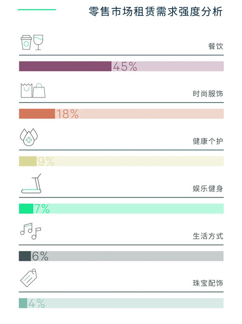 餐飲依舊是主要驅(qū)動力,需求占比45%,其中以咖啡茶飲和亞洲食肆品類需求特別亮眼?Х炔栾嬞惖栏偁幰琅f火熱,本季度Blue Bottle Coffee內(nèi)地首店亮相上海蘇州河畔,其排隊(duì)盛況刷屏各大社交網(wǎng)絡(luò),而其上海第二家門店也于靜安嘉里中心圍擋。M Stand于靜安大悅城開出首家冰淇淋概念店,推出多樣創(chuàng)新產(chǎn)品線。中式飲品借勢國潮加速發(fā)展,1828王老吉于尚悅灣開出旗艦店,而來自廣西的特色茶飲品牌阿嬤手作上海首店也于新天地開業(yè),繼連鎖茶飲加速擴(kuò)張之后,行業(yè)迎來新一波國潮創(chuàng)新新浪潮。此外,以日本和泰國料理為主的亞洲食肆本季度布點(diǎn)積極。時尚服飾需求熱度不減,占比18%。冬奧余溫推動運(yùn)動品牌持續(xù)擴(kuò)張,NB GREY概念店亮相環(huán)貿(mào),德國奢華運(yùn)動品牌BOGNER入駐恒隆廣場。潮流設(shè)計品牌集結(jié)前灘太古里,多家重磅首店相繼入駐。服務(wù)業(yè)態(tài)占比16%,以美容和美發(fā)沙龍為主的個護(hù)品類擴(kuò)張積極。截至季末,全市空置率環(huán)比下降0.3百分點(diǎn)至三年新低6.4%,全市購物中心首層租金環(huán)比上升0.4%至每天每平方米人民幣34.9元。