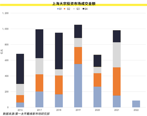 受疫情反復(fù)及動蕩的國際局勢影響,2022年第一季度上海投資市場整體活躍度較低,共完成八宗大宗成交,合計成交金額達(dá)人民幣84億元。除自用成交以外,大部分市場成交為“新經(jīng)濟(jì)”板塊物業(yè)成交,第一季度市場有三宗工業(yè)物業(yè)及一宗園區(qū)物業(yè)成交,成交總額占總成交額的38%。大部分投資者對傳統(tǒng)型物業(yè)(寫字樓及零售)仍保持謹(jǐn)慎的態(tài)度,且對價格較敏感。四月初,太平洋房屋以低至人民幣13.95億元收購了綠地瀛通大廈一棟大廈,收購單價相當(dāng)于9年前恒豐銀行收購該物業(yè)另一棟大廈價格的約六折。