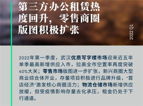 CBRE武漢分公司董事總經(jīng)理王祎表示,預(yù)計(jì)武漢優(yōu)質(zhì)寫字樓市場年內(nèi)還將迎來逾40萬平方米新增供應(yīng),其中近六成位于新興商務(wù)區(qū)。新項(xiàng)目交付將為租戶提供更為靈活的租賃選擇,預(yù)計(jì)搬遷升級(jí)需求將進(jìn)一步釋放。零售市場同樣將迎來優(yōu)質(zhì)項(xiàng)目開業(yè),其中武漢萬象城、武商夢世代、龍湖白沙天街受到市場關(guān)注。隨著疫情管理進(jìn)入常態(tài)化,武漢消費(fèi)活力將支撐零售市場持續(xù)向好發(fā)展。