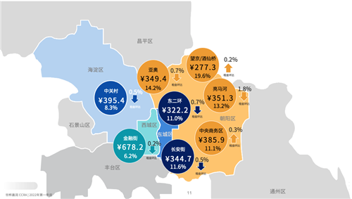 甲級(jí)寫字樓市場(chǎng)各商圈平均租金