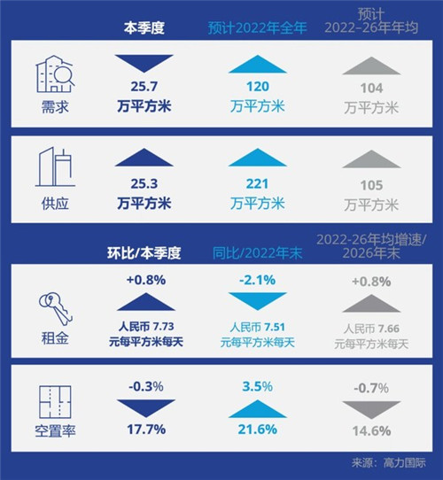 2022年供應(yīng)高峰過(guò)后,租金將逐步反彈,空置率也將在2023年重新進(jìn)入下降趨勢(shì)。未來(lái)市場(chǎng)大環(huán)境或?qū)⒏欣跇I(yè)主方,租戶方需積極應(yīng)對(duì)市場(chǎng)環(huán)境變化并調(diào)整其策略。