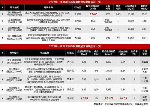 ◆一季度合計(jì)成交5宗商服類用地,僅大興區(qū)新增供應(yīng)2宗