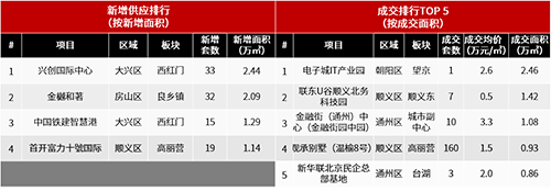◇從一季度項(xiàng)目成交面積來看,TOP 5項(xiàng)目主要來自朝陽、順義和通州三區(qū),其中中關(guān)村發(fā)展旗下的電子城IT產(chǎn)業(yè)園成交面積2.46萬平方米,位居首位,成交均價(jià)約2.6萬元/㎡,成交金額同時(shí)也位居一季度榜首,為6.48億元;其次為北京聯(lián)東旗下的聯(lián)東U谷順義北務(wù)科技園,成交面積1.42萬平方米,均價(jià)約0.5萬元/㎡。而在成交價(jià)格排名方面,豐臺區(qū)北京金茂府寫字樓物業(yè)成交均價(jià)獲本季榜首,約5.4萬元/㎡。