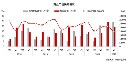 ◇銷售面積同比增加34.28%,銷售價(jià)格同比下跌37.39%:一季度全市銷售面積為19.31萬平方米,較上年同期增加34.28%,較上季度環(huán)比減少19.88%。其中3月份銷售面積成交15.17萬平方米,占整季銷售量的78.56%。銷售價(jià)格方面,一季度全市銷售均價(jià)為19,792元/㎡,較上年同期下跌37.79%,較上季度環(huán)比下跌25.19%。一季度2萬元/㎡以下商業(yè)物業(yè)成交占比超過80%,一定程度拉低了全市銷售均價(jià)。
