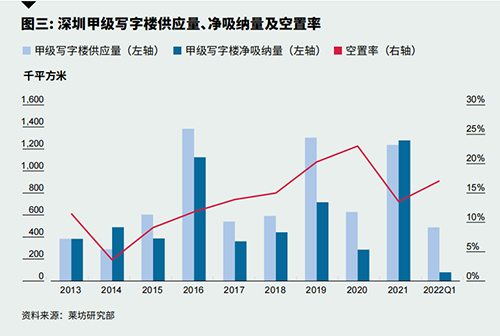 第一季度,全市新交付三個項目,共帶來48萬平方米的寫字樓面積。三個項目均位于南山區(qū),分別為前海鴻榮源中心,聯想后海中心以及蛇口的新時代廣場二期。