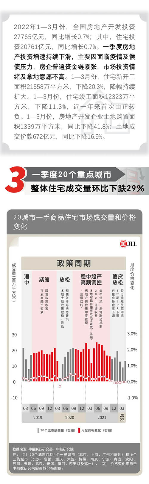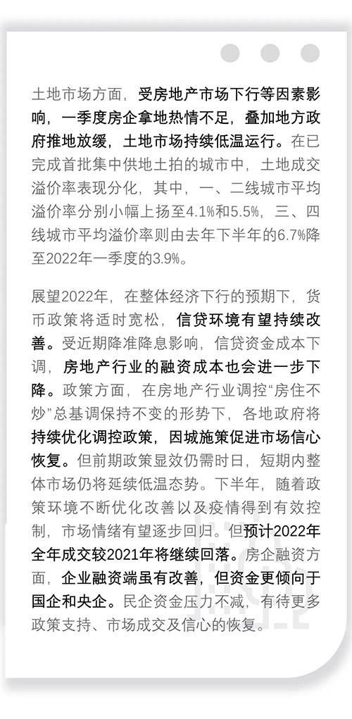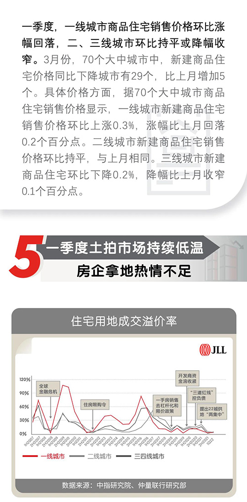 一季度,中國住宅市場政策端、信貸端、貨幣端等多方面迎來邊際放松,整體住宅成交規(guī)模持續(xù)環(huán)比下跌趨勢,房企拿地熱情不足,土拍市場保持低溫。
