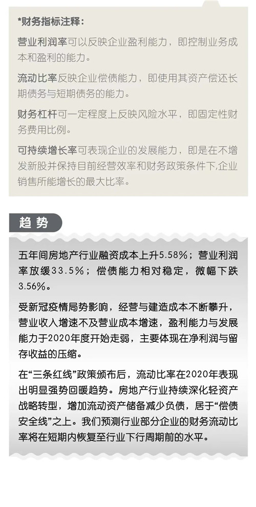 2019年開始,中央出臺了一系列去杠桿化的配套政策,如“三道紅線”、“貸款集中度管理”等。截至2021年,二十家房地產領軍企業(yè)的固定借貸成本比率相比2019年升高了2.9%,同時也積極響應政策要求,增強現(xiàn)金流管理,短期償債能力大幅提升6.9%。