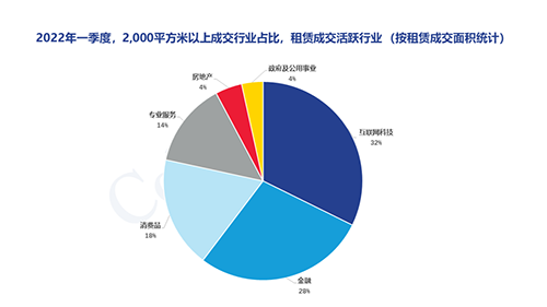 本季度市場(chǎng)需求放緩,錄得凈吸納量2.7萬平方米。市場(chǎng)主要需求集中在互聯(lián)網(wǎng)科技和金融類企業(yè),在本季度2,000平方米以上租賃成交中分別占比32%和28%。在子市場(chǎng)方面,琶洲市場(chǎng)表現(xiàn)最為活躍,以金融和互聯(lián)網(wǎng)企業(yè)租賃交易為主。預(yù)計(jì)未來三年,琶洲將進(jìn)入高速發(fā)展時(shí)期,多個(gè)知名互聯(lián)網(wǎng)總部將在此落戶。此外,根據(jù)2022年發(fā)布的《廣州人工智能與數(shù)字經(jīng)濟(jì)試驗(yàn)區(qū)建設(shè)總體方案》,琶洲未來將建設(shè)成為廣州人工智能與數(shù)字經(jīng)濟(jì)試驗(yàn)區(qū),互聯(lián)網(wǎng)、人工智能類產(chǎn)業(yè)的聚集效應(yīng)將會(huì)進(jìn)一步加強(qiáng)。