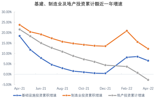 投資端來看,地產(chǎn)投資受整體經(jīng)濟環(huán)境及疫情影響較大,增速由正轉負,跌幅進一步加深。而基建投資和制造業(yè)投資雖然略有下滑,仍然維持一定增速,進而使得固定投資增速勉強保持。