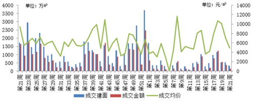 2021年第21周-2022年第21周土地成交走勢圖