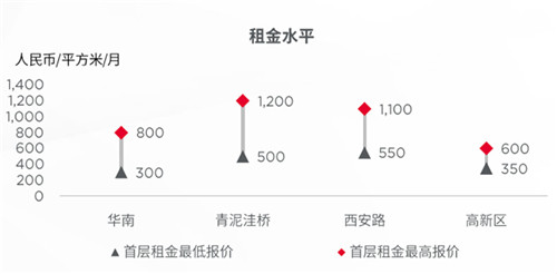 本季度市場成交逐漸回暖,疫情期間被抑制的寫字樓租賃需求得到釋放,同時,優(yōu)質(zhì)項目實施以價換量的策略促使市場成交顯著上升,市場再度迎來階段性的升級搬遷類需求窗口期。本季度,全市甲級寫字樓錄得凈吸納量為24,458平方米,空置率環(huán)比下降2.5個百分點至29.1%,全市平均租金環(huán)比下降4.9%至每月每平方米人民幣86.0元。