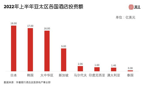 2022年亞太地區(qū)酒店行業(yè)繼續(xù)加速復(fù)蘇,隨著各國邊境的逐步開放,許多酒店從依賴國內(nèi)需求轉(zhuǎn)向入境游和商務(wù)需求,酒店交易也隨之在各市場活躍起來。根據(jù)仲量聯(lián)行最新數(shù)據(jù),今年一月至六月亞太區(qū)酒店交易總額達(dá)68億美元,投資同比增長33.0%,較2019年增長11.9%,也表明亞太地區(qū)酒店行業(yè)的資本配置已恢復(fù)到疫情前水平。